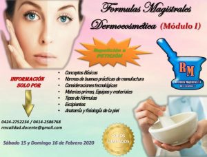 Recetura Magistral, C.A anuncia la reedición del Taller de Fórmulas Magistrales Dermocosmética, (módulo 1) los días Sábado 15 y Domingo 16 de febrero, en su sede ubicada en la Asociación de Profesores de la UCV