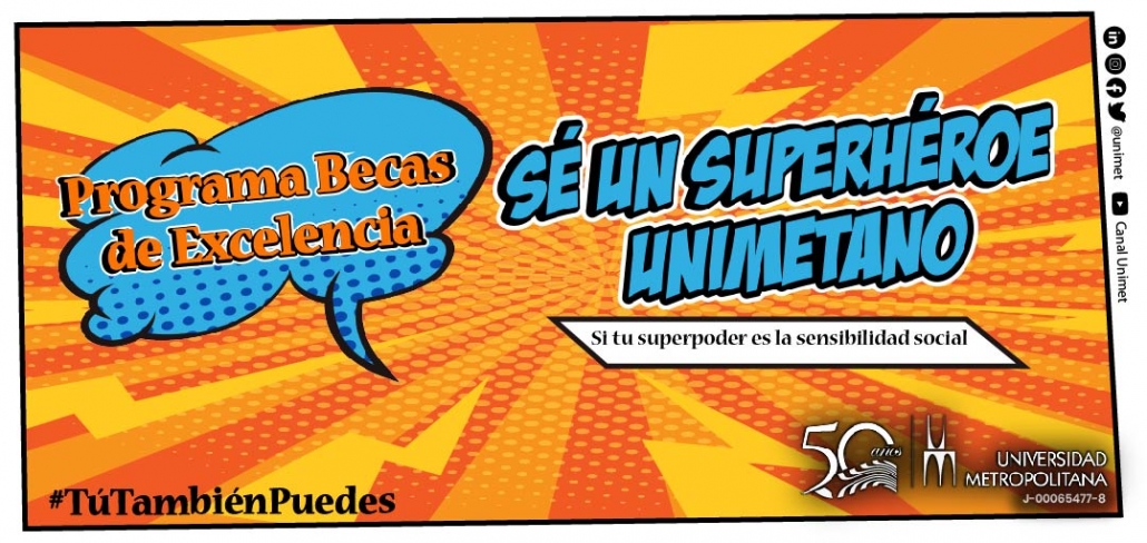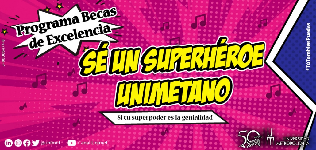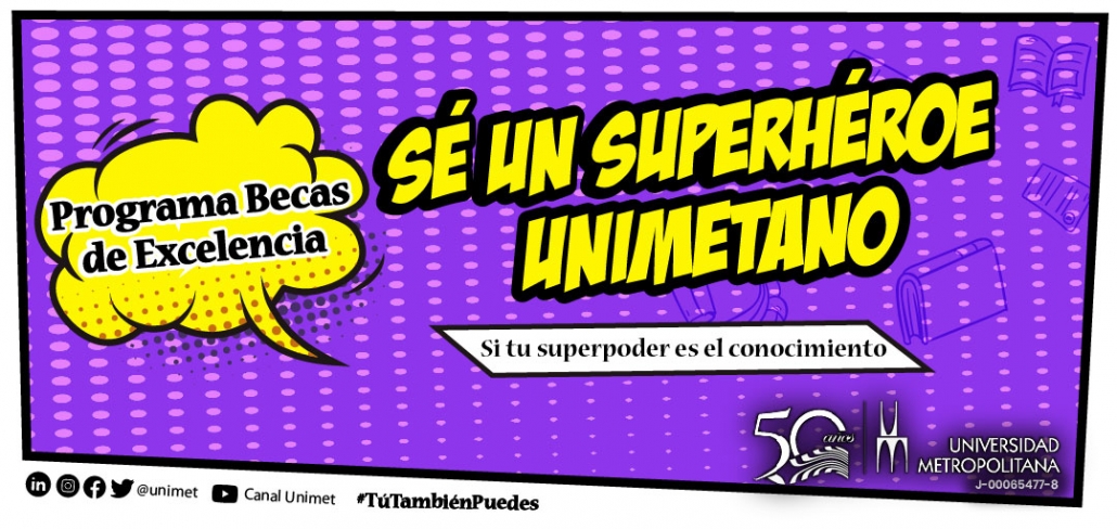 La Universidad Metropolitana -Unimet- en aras de formar a los superhéroes de hoy y profesionales del mañana, inicia por noveno año consecutivo el proceso de postulación para su Programa de Becas Excelencia en sus cinco tipologías: Académica, Deportiva, Artística, Emprendimiento y Compromiso Cívico.