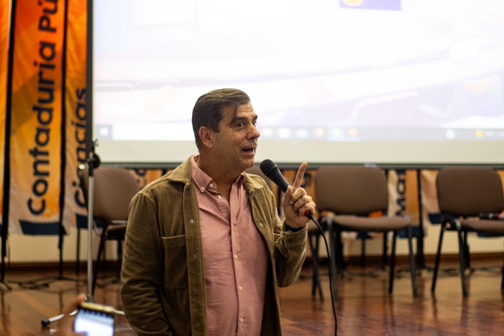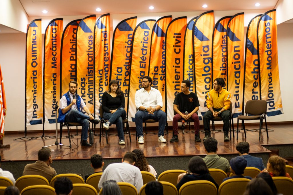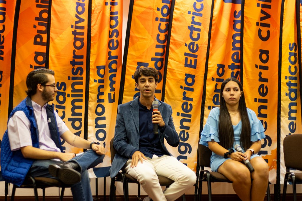 Alejandro Ghysbrecht, estudiante de Ingeniería y miembro activo de diversas agrupaciones culturales, fue el encargado de moderar el evento. Por su parte, el secretario general, Luis Santiago Perera, en representación del equipo rectoral, expresó su alegría por tener la oportunidad de formar parte de este espacio de encuentro y realizó un actividad interactiva con los estudiantes en la que respondía, a modo de trivia, diferentes preguntas sobre la historia de la universidad, sus mitos y la cultura unimetana.